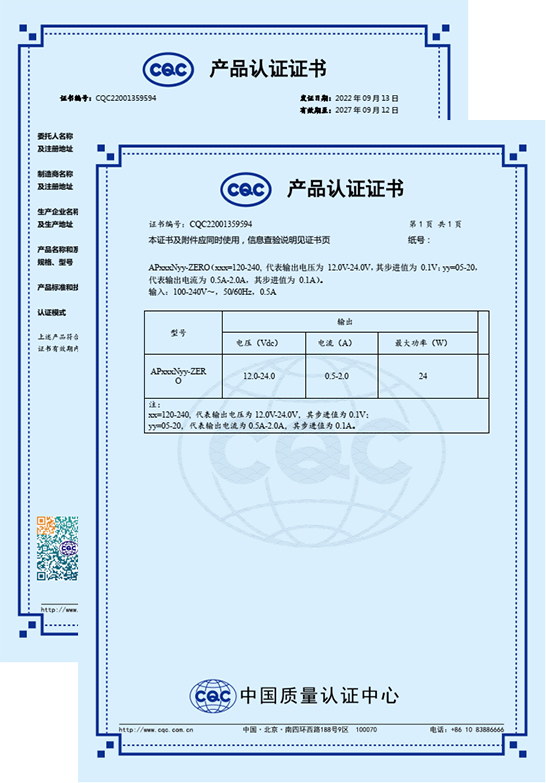 熱烈祝賀我司AP120N20-Zero、AP150N16-Zero、AP200N12-Zero、AP240N10-Zero等型號(hào)AC-DC電源模塊順利通過(guò)CQC認(rèn)證,提高了產(chǎn)品競(jìng)爭(zhēng)力和企業(yè)形象,增強(qiáng)客戶對(duì)產(chǎn)品的信心。